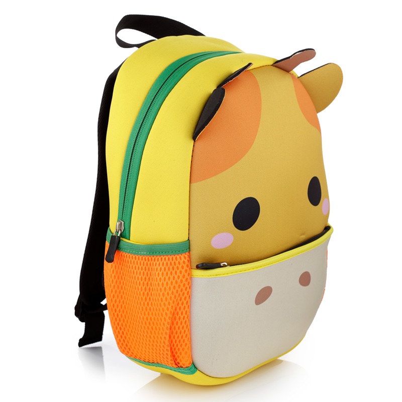 Material: 50% Neoprene, 30% Nylon and 20% EVA Product Information: The main compartment is zip up, along with a smaller zip up front pocket and two netting side pockets. The shoulder straps are adjustable. Height 30cm Width 23cm Depth 10cm