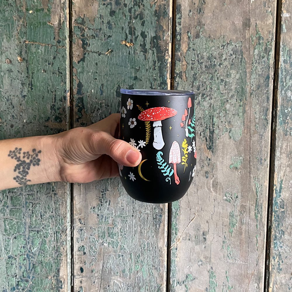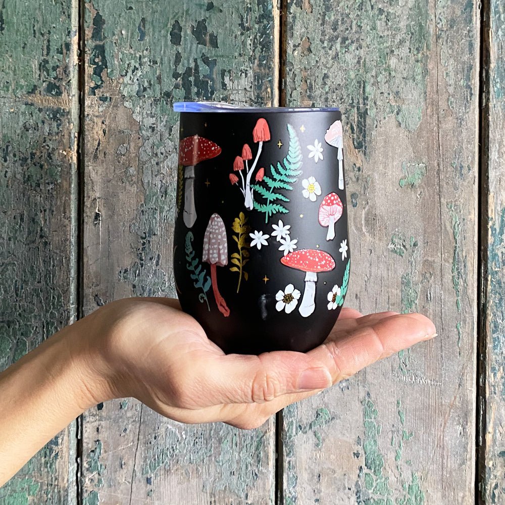 Features: Drink up the charm of the forest with this lovely cup. Decorated in beautiful hand-drawn illustrations of toadstools and ferns, this keep cup will feel like a little escape to the woods with every sip you take. Carefully crafted from high-grade stainless steel with double-walled vacuum technology to keep your drinks hot or cold this cup comes with a BPA-free spill resistant clear plastic lid. Made extra luxurious with gold foil details, this cutie would make a lovely gift for nature lovers.