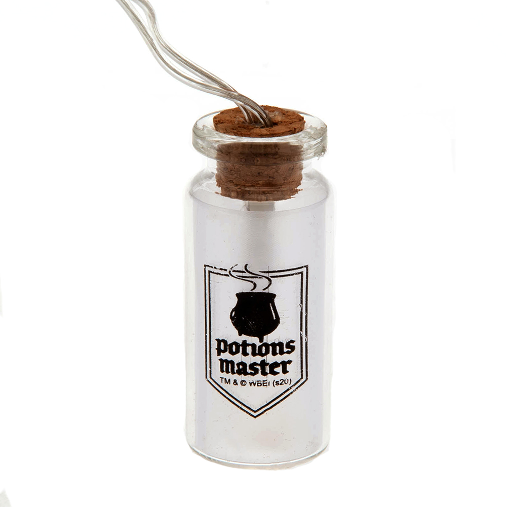 10 glass bottle lights illuminated by LED’s hanging on a cord