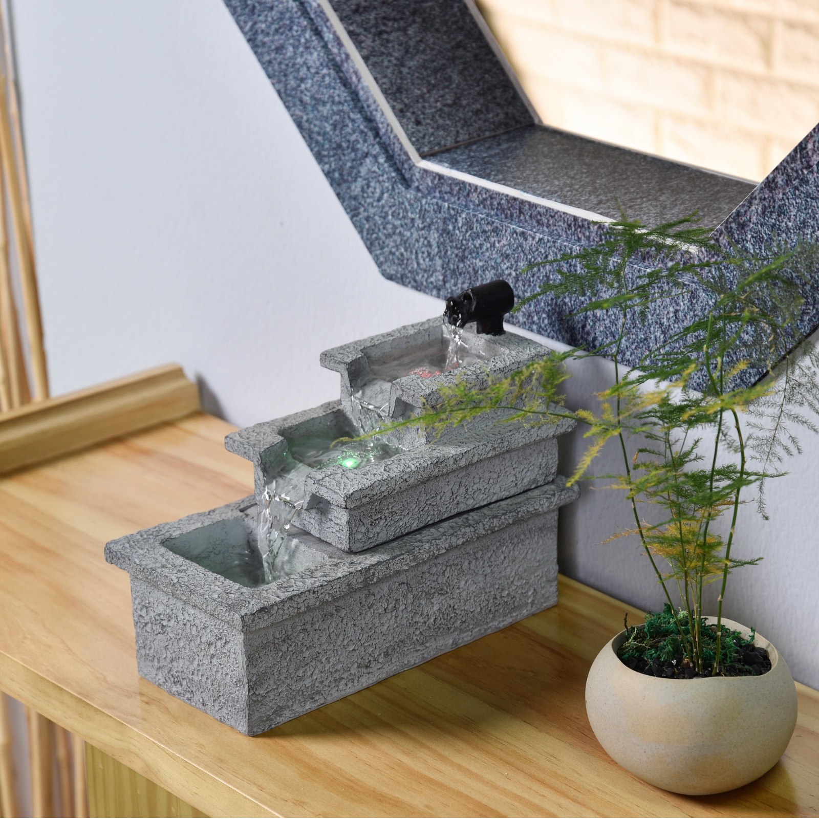 Indoor Fountain – Ibie – Natural Design – Waterfall Water Flow – Colored Led Lighting – Decoration Idea