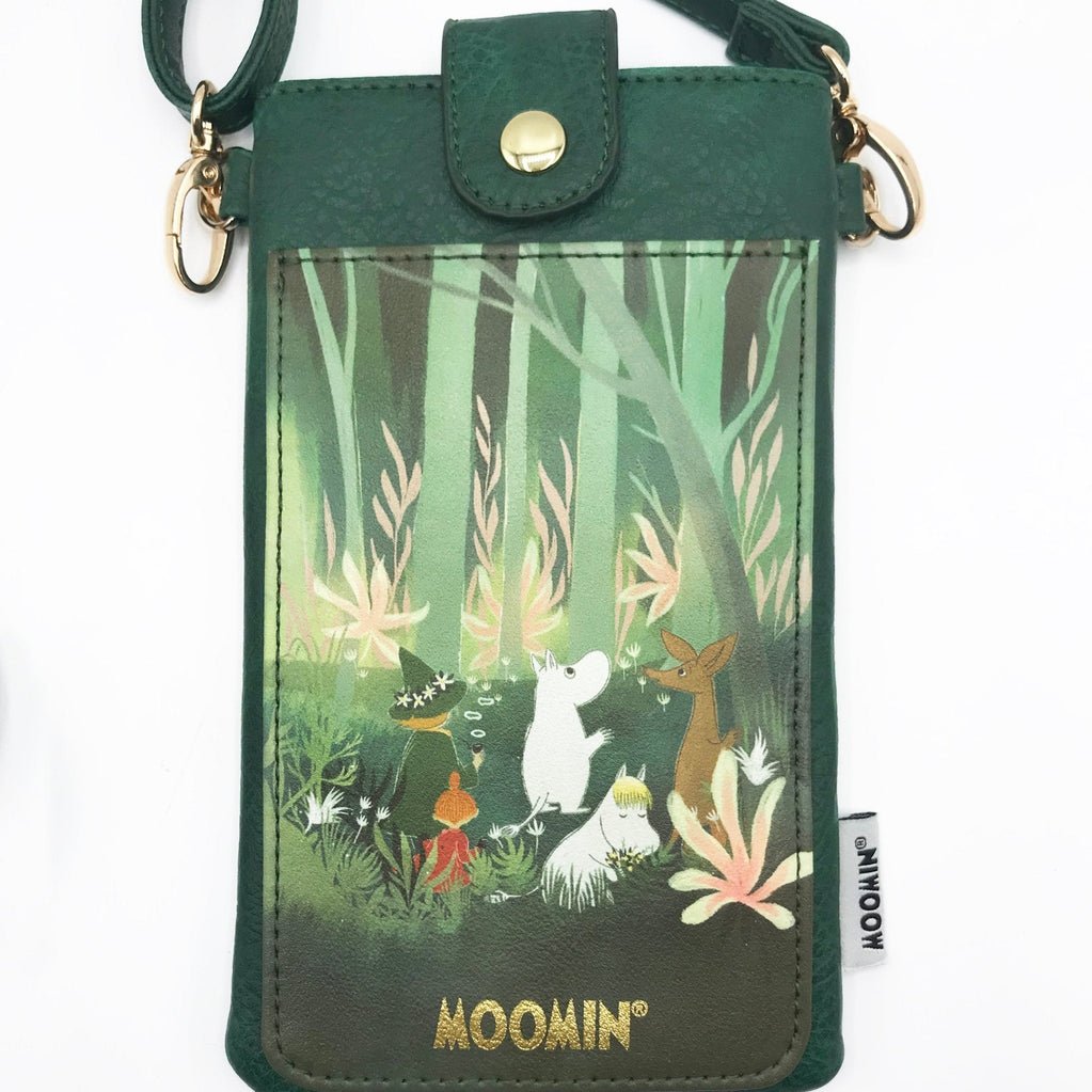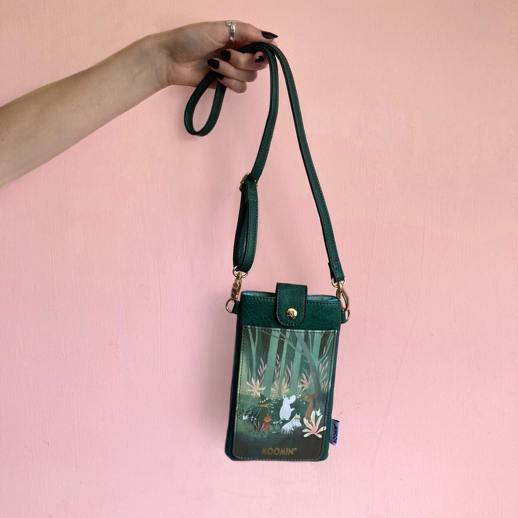 Features: Meet your new travel companion, the Moomin Forest Mini Bag! This lovely little green bag is designed for popping your phone in, and is great for days when you want to go hands-free! The front pouch is printed with a rich illustration of Moomin and his friends exploring the forest, and the main pouch is made from lovely textured faux-leather. It is super handy for quickly grabbing your phone when you want to take a photo, or have to take a call, rather than rifling through the depths of an over packed bag! This cute accessory is meant for everyone, and is the perfect balance of style and function, with a lovely green strap and gold hardware. The strap is adjustable and detachable to make it easy to wear on your shoulder or across your chest. It would make a lovely gift for fans of Moomin.