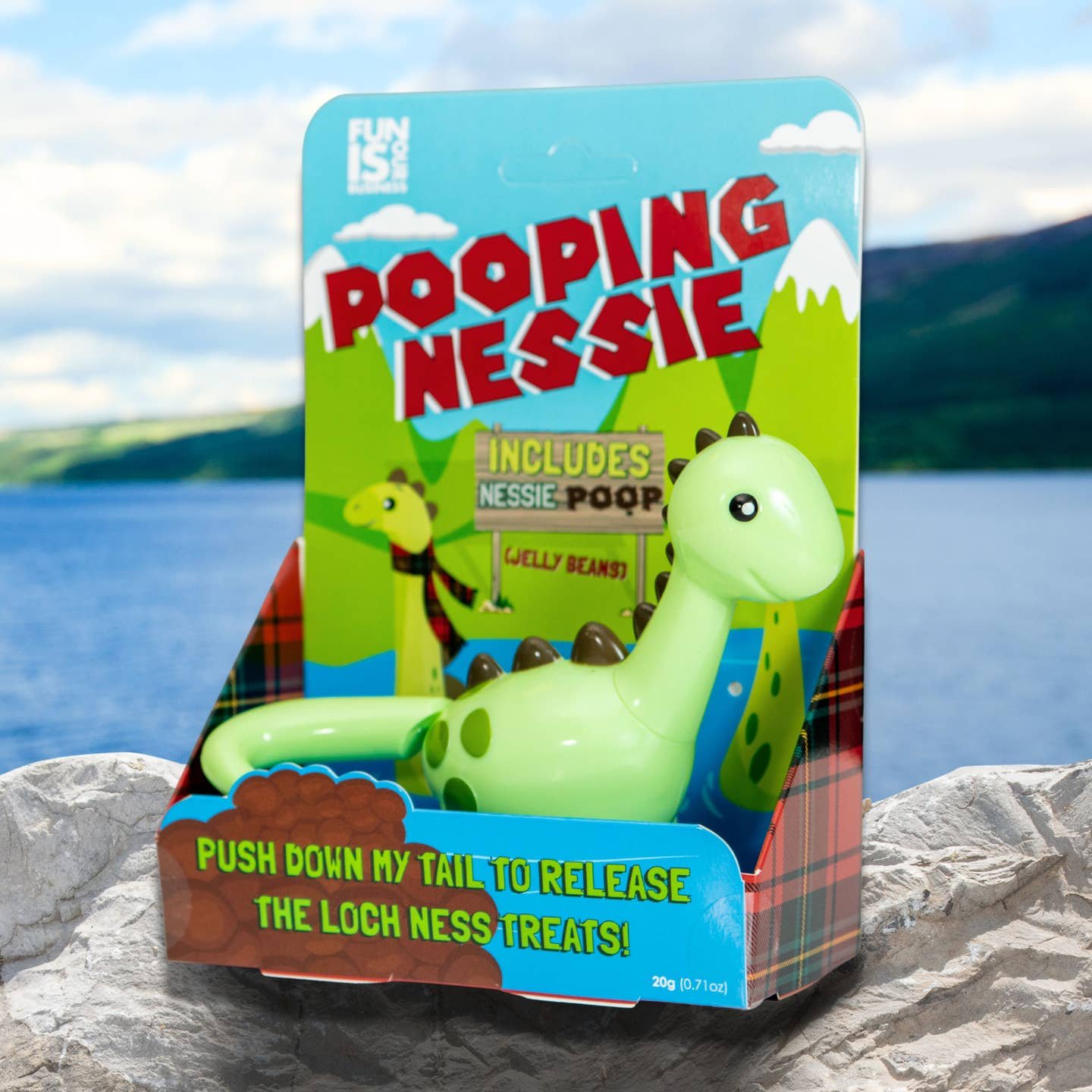 Turn one of the biggest monster myths into a reality with our funny Pooping Nessie kids toy! Filled with delicious jelly beans, disguised as Nessie’s poo, this fun poop gift is a hilarious mini monster! Simply push on the loch ness monster’s tail and watch delicious jelly sweets fall out! If you run out, you can refill with your favourite sweets of your choice, making this poo gift endless fun! Placed within colourful loch ness themed packaging, this Pooping Nessie looks right at home and makes a great quality fun poo gift for kids of all ages! Uncover the myths and enjoy delicious jelly beans with your new loch ness monster novelty toy!