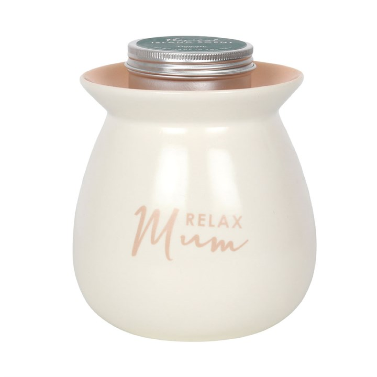 Encourage Mum to relax and take some time out with this contemporary white oil burner and wax melt set. Made from soy wax in the scent Tropical Island, your Mum will feel like she’s on her very own island paradise. A thoughtful gift which can be used again and again and topped up with Mum’s favourite fragrances. Product Dimensions: H11.5cm x W10cm x D9.8cm Packaged Dimensions: H15cm x W12cm x D11cm