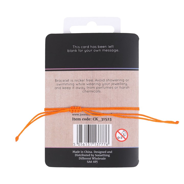 Balance and realign the sacral chakra with this orange string and metal charm bracelet. Presented on a matching backing card that reads, ‘Creativity, sexuality, feelings, emotions, pleasure’. Product Dimensions: H1.9cm x W2.4cm x D0.8cm Packaged Dimensions: H2.3cm x W13cm x D2cm